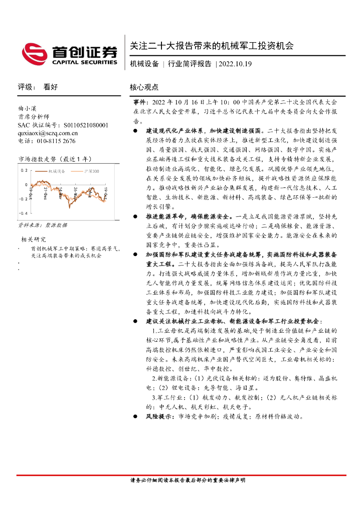 首创证券:机械设备行业简评报告:关注二十大报告带来的机械军工投资机会.pdf