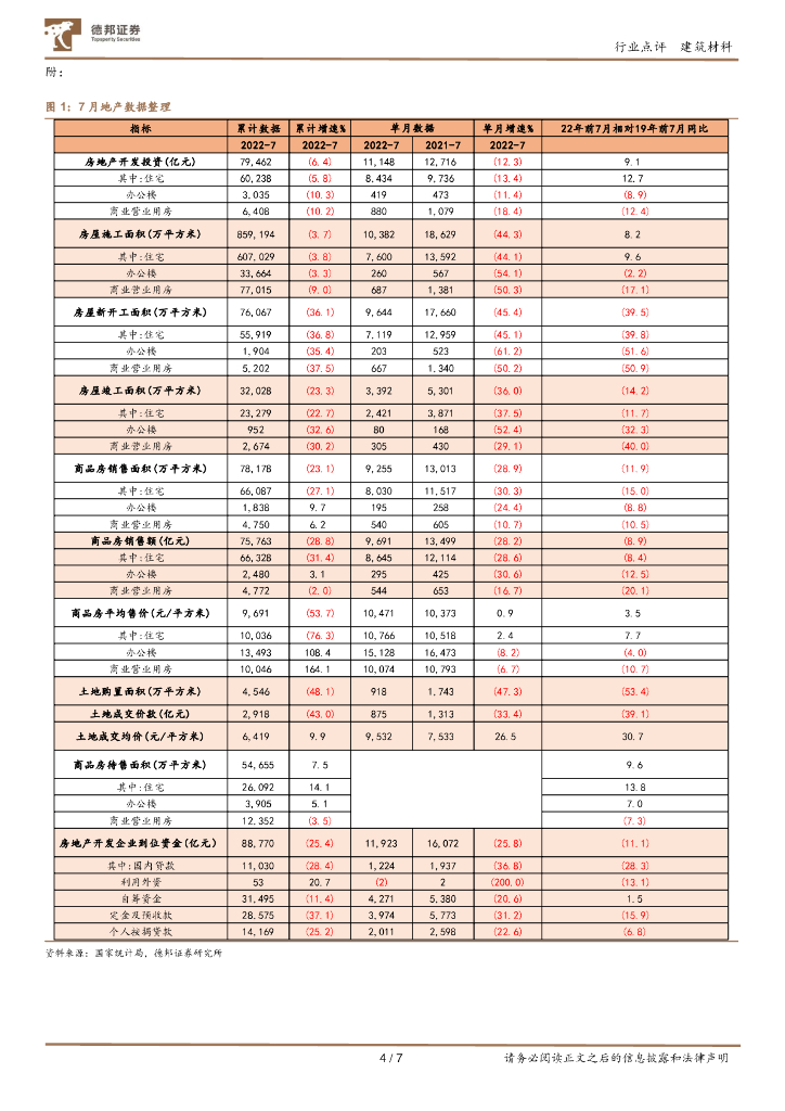 德邦证券:建筑材料7月行业数据点评:地产端仍需更强力度政策拉动,Q3基建投资有望维持高增.pdf