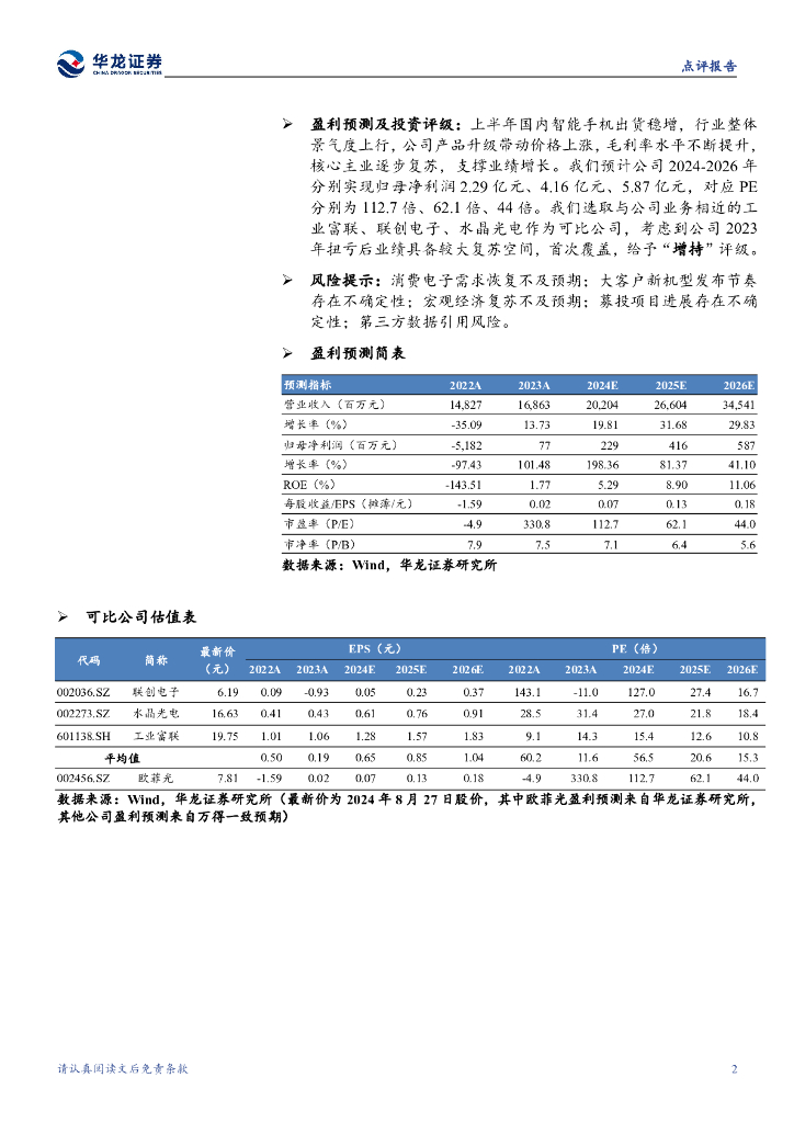 华龙证券:欧菲光(002456)-2024年半年报点评报告:行业复苏+产品升级推动业绩增长,现金流大幅改善.pdf