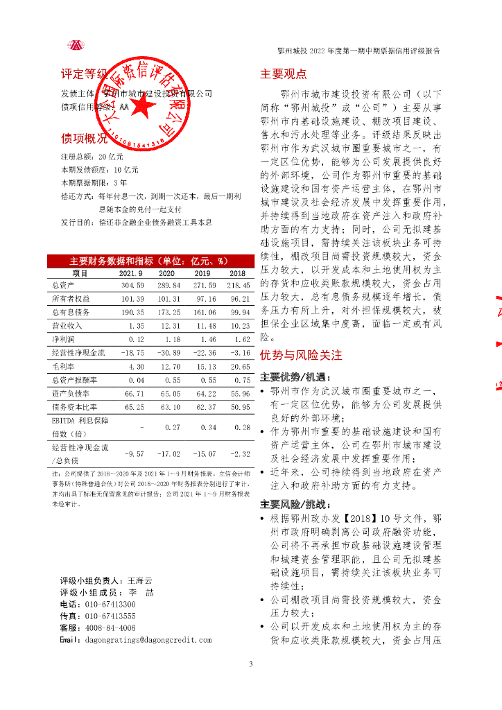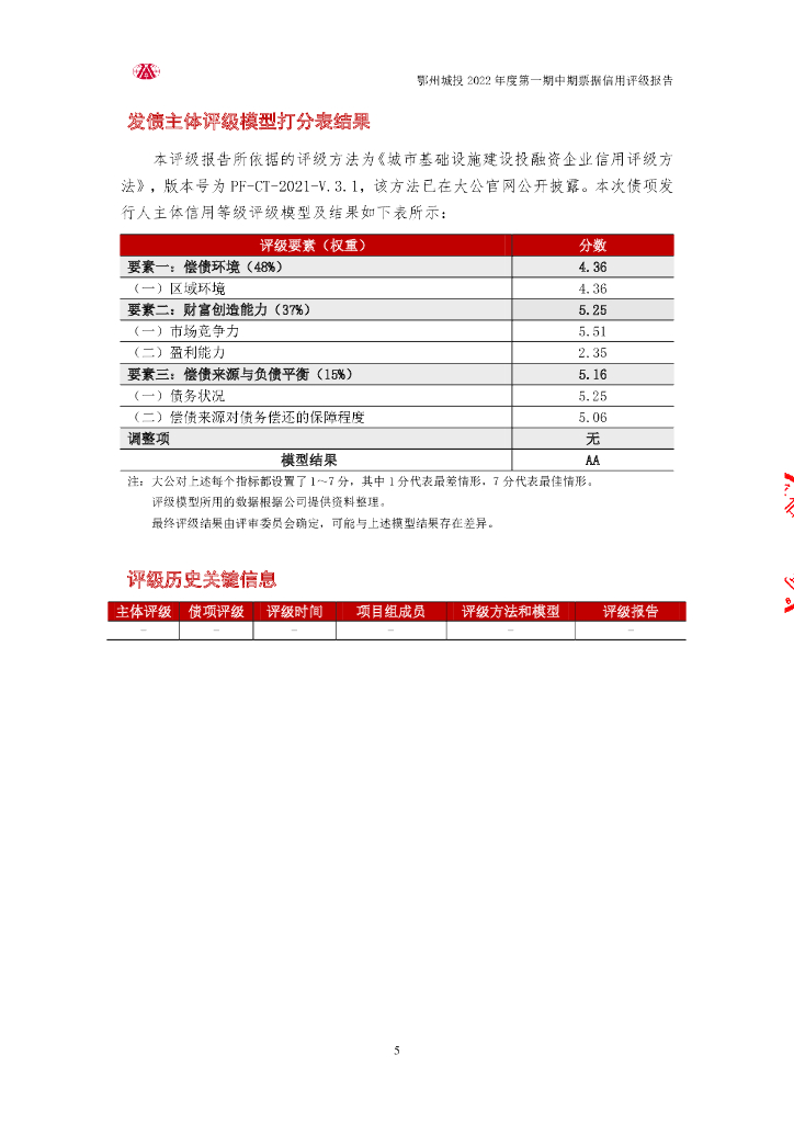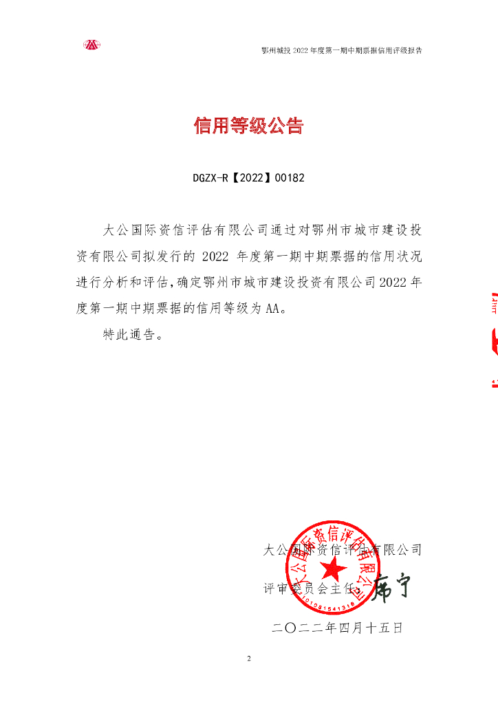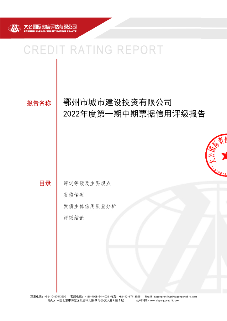 大公:鄂州市城市建设投资有限公司2022年度第一期中期票据信用评级报告.pdf