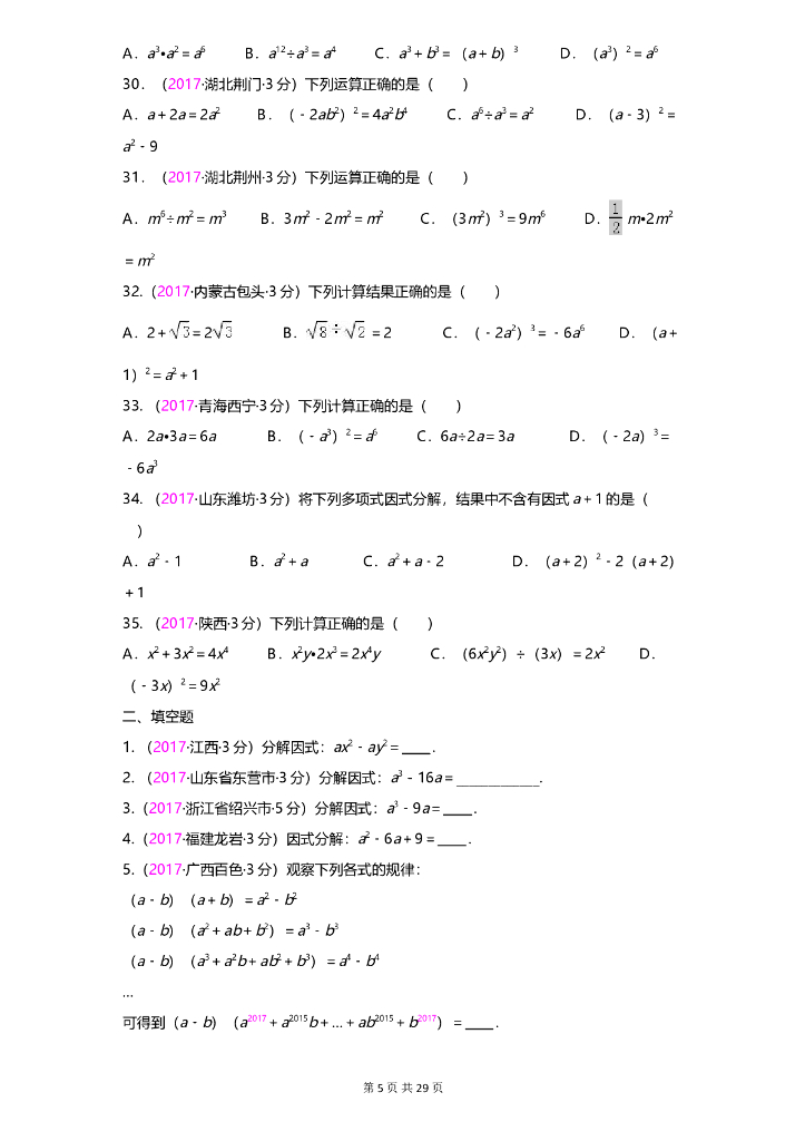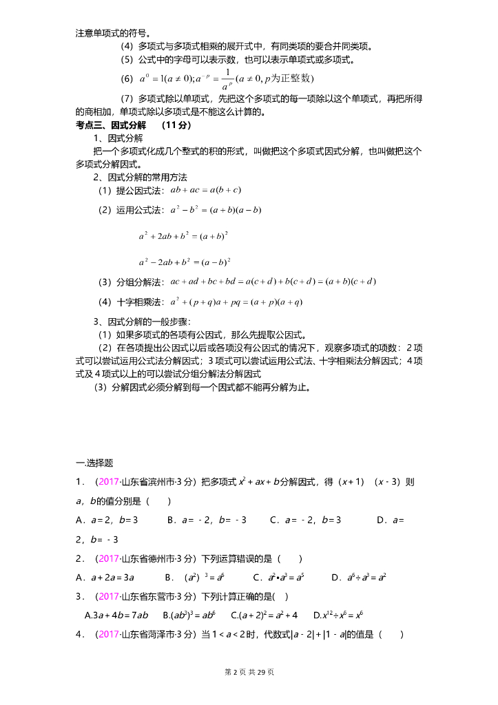 数学全国中考真题分类汇编专题8 整式与因式分解.doc