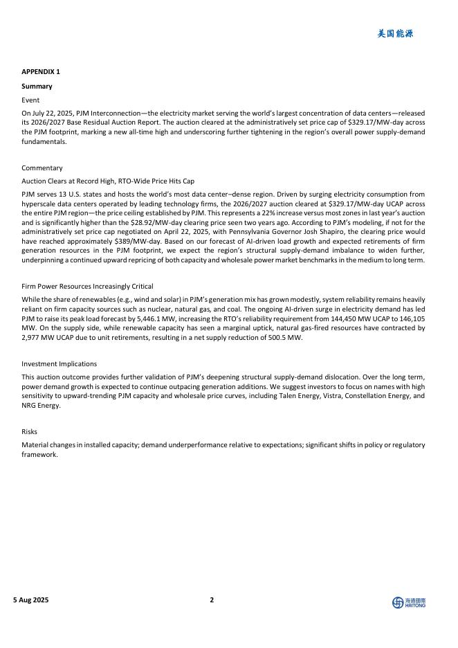 海通国际:美国能源:全球最大数据中心集中地电力市场PJM容量拍卖价格创新高.pdf