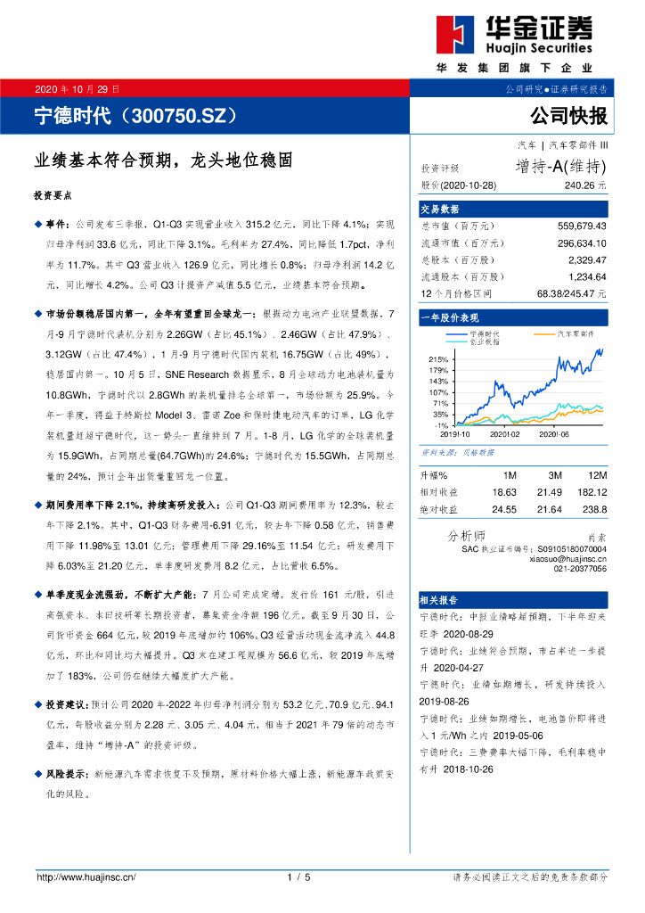 华金证券:宁德时代(300750)-业绩基本符合预期,龙头地位稳固.pdf
