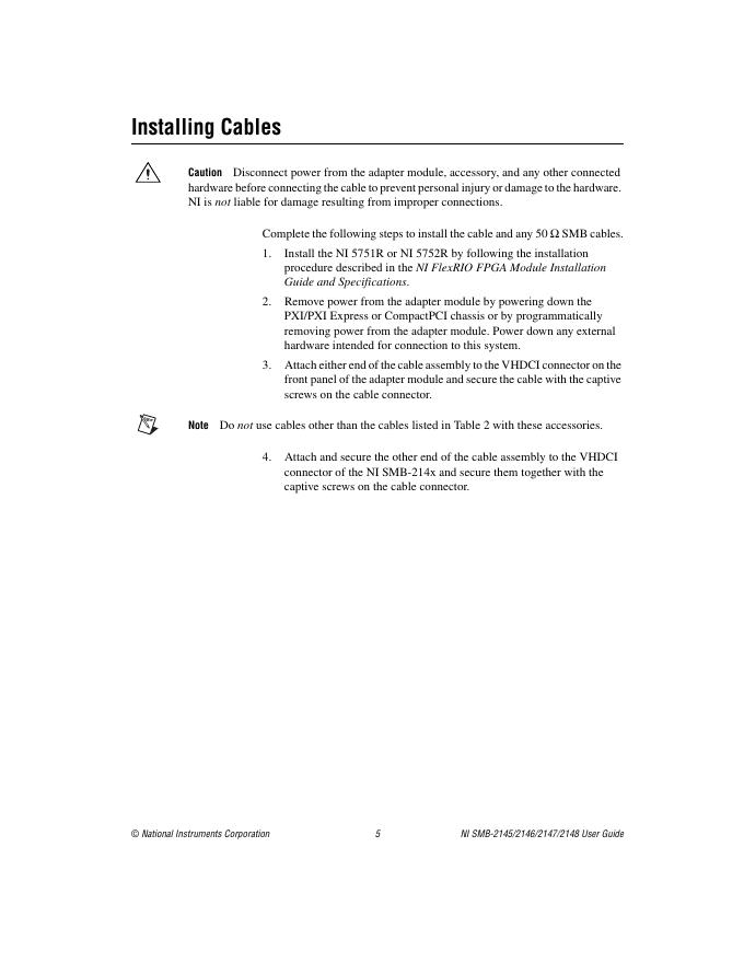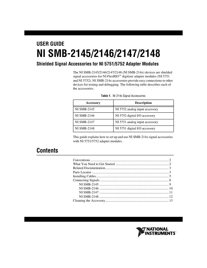 NATIONAL INSTRUMENTS NI SMB-2145/2146/2147/2148 Shielded Signal Accessories for NI 5751/5752 Adapter Modules USER GUIDE.pdf