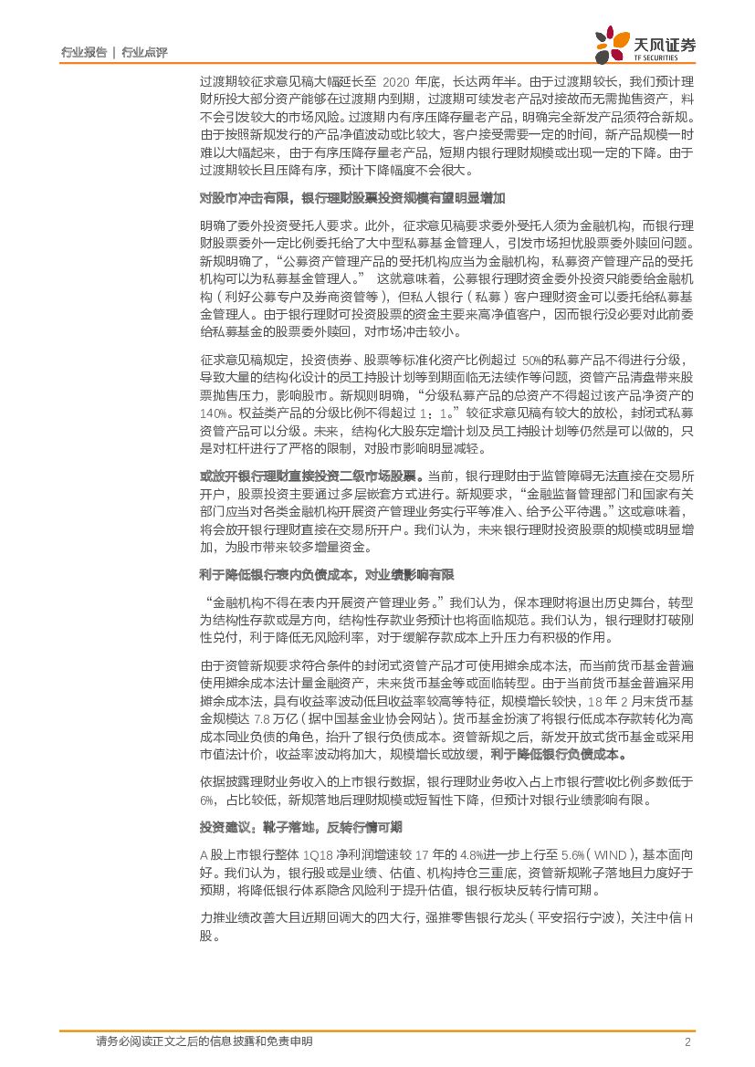 天风证券:银行行业点评:资管新规靴子落地,开启银行理财新时代.pdf
