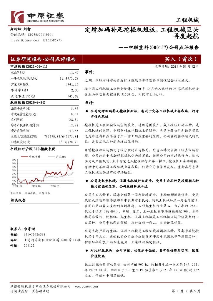 中原证券:中联重科(000157)-公司点评报告:定增加码补足挖掘机短板,工程机械巨头再度起航.pdf
