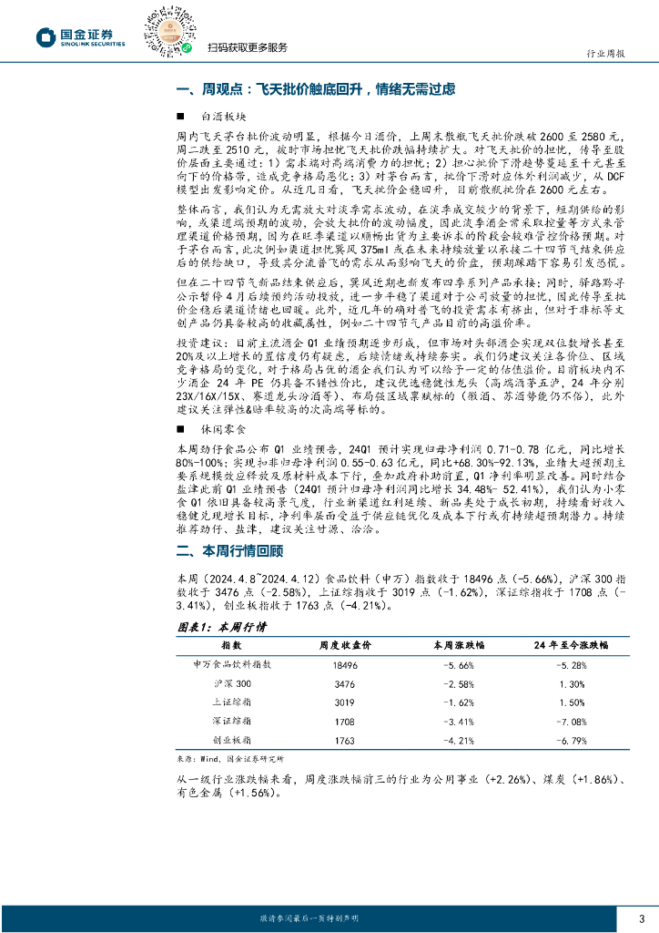 国金证券:食品饮料行业周报:飞天批价企稳回升,情绪筑底推荐配置.pdf