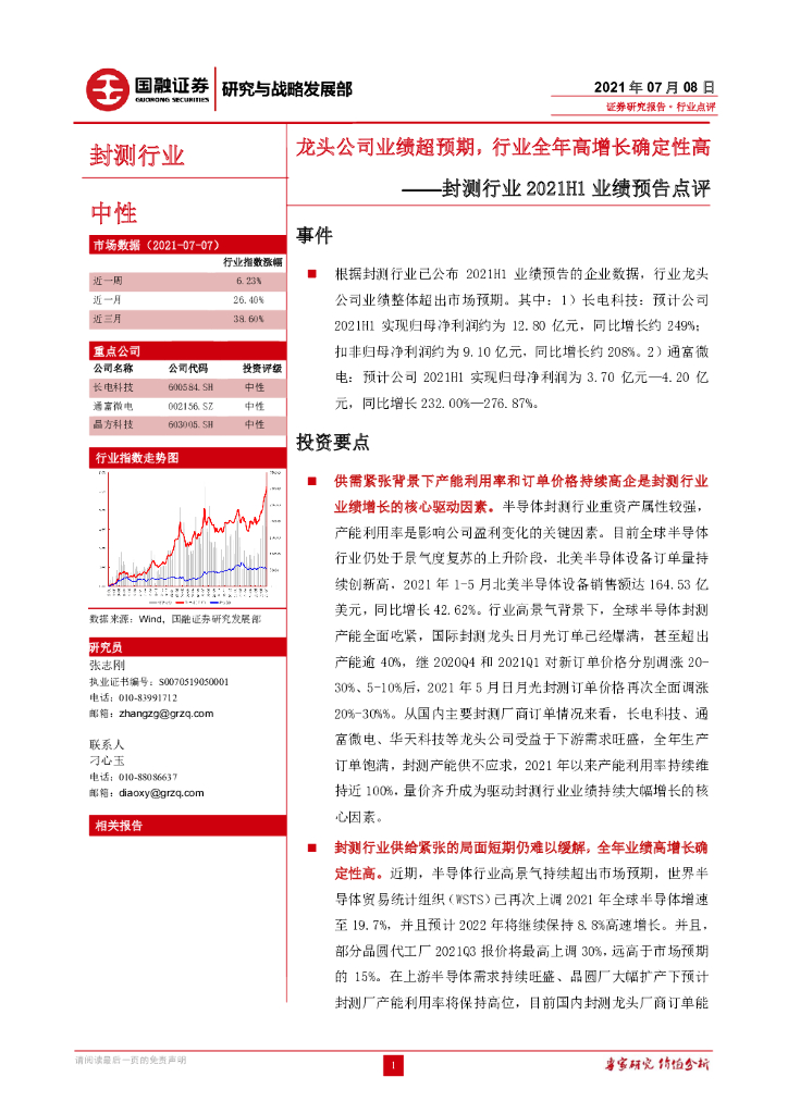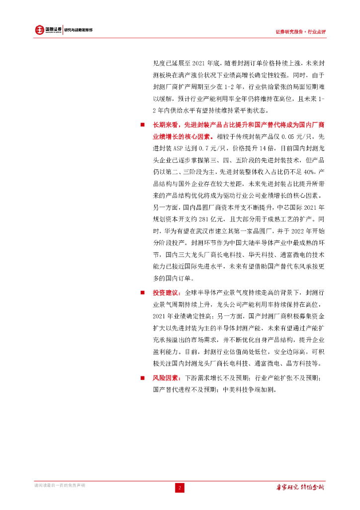 国融证券:封测行业2021H1业绩预告点评:龙头公司业绩超预期,行业全年高增长确定性高.pdf