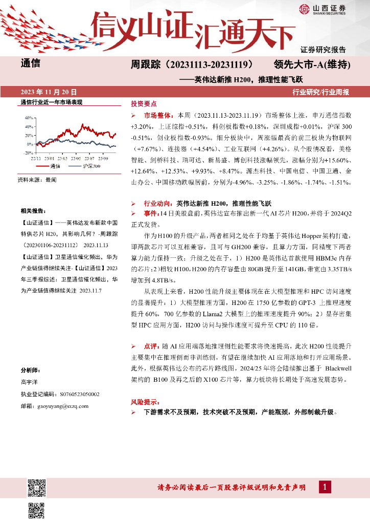 山西证券:通信周跟踪:英伟达新推H200,推理性能飞跃.pdf