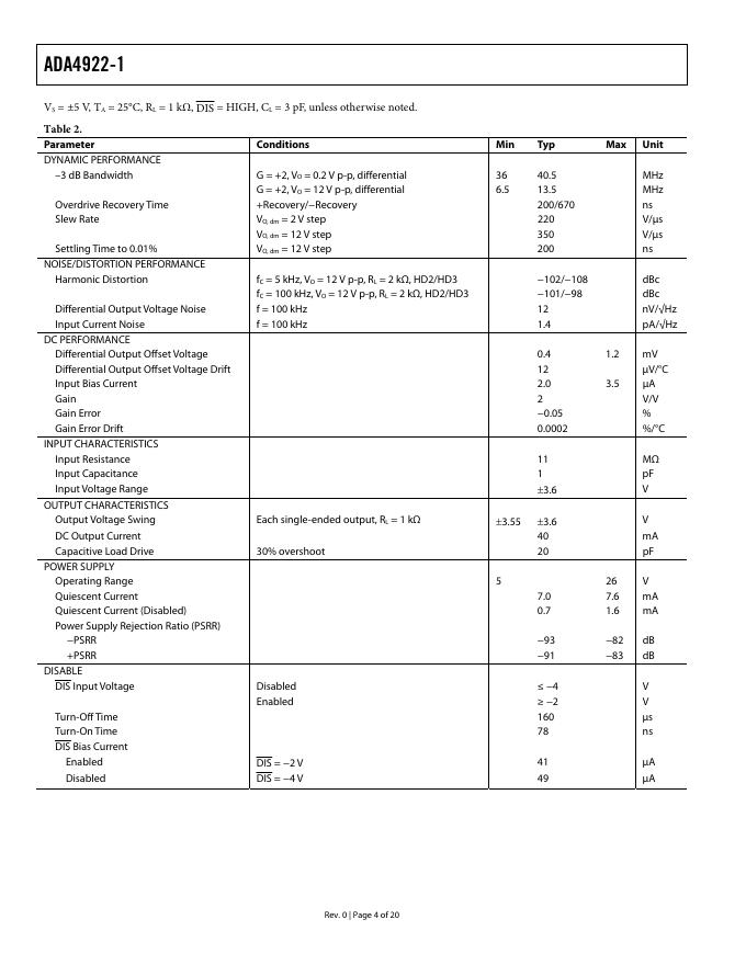 ANALOG DEVICES ADA4922-1 数据手册.pdf