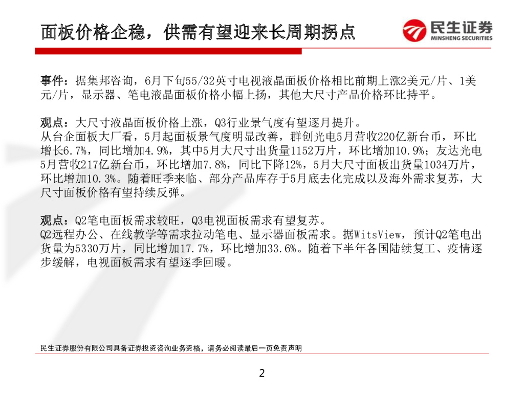 民生证券:电子:液晶面板价格企稳上扬,景气度有望持续提升.pdf