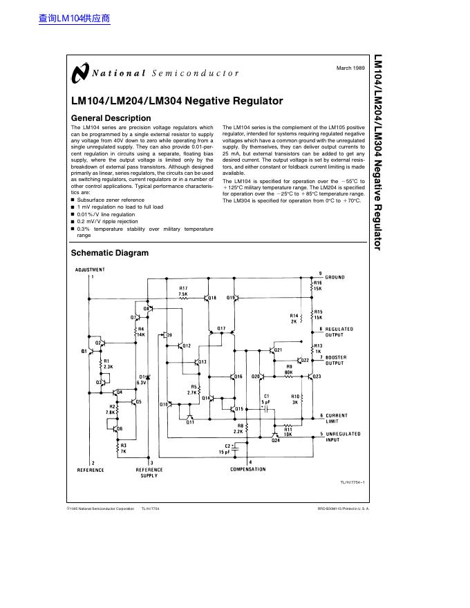 National Semiconductor LM104/LM204/LM304 Negative Regulator 数据手册.pdf