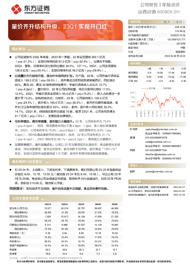 东方证券:山西汾酒(600809)-量价齐升结构升级,23Q1实现开门红.pdf