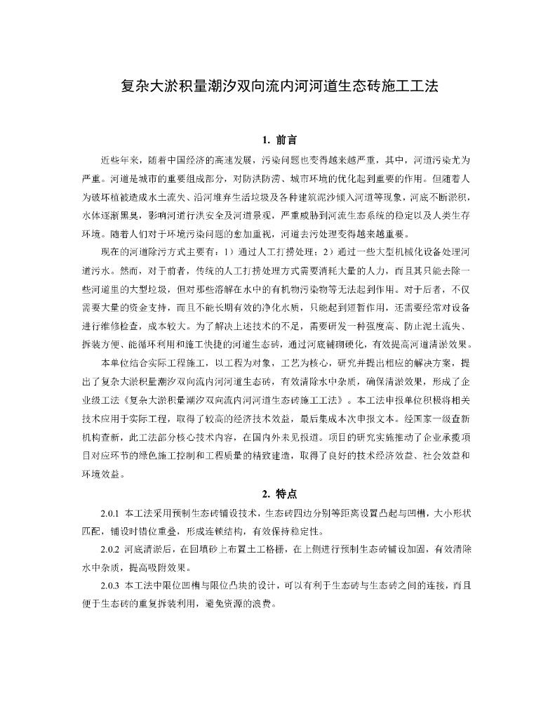 大淤积量潮汐双向流内河河道生态砖施工工法.pdf