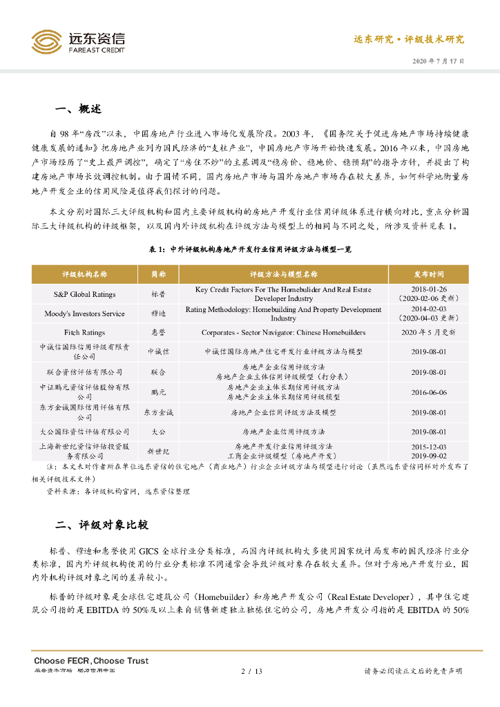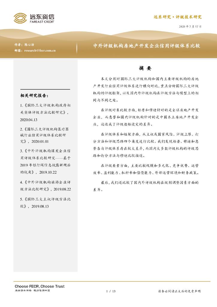 远东资信:中外评级机构房地产开发企业信用评级体系比较.pdf