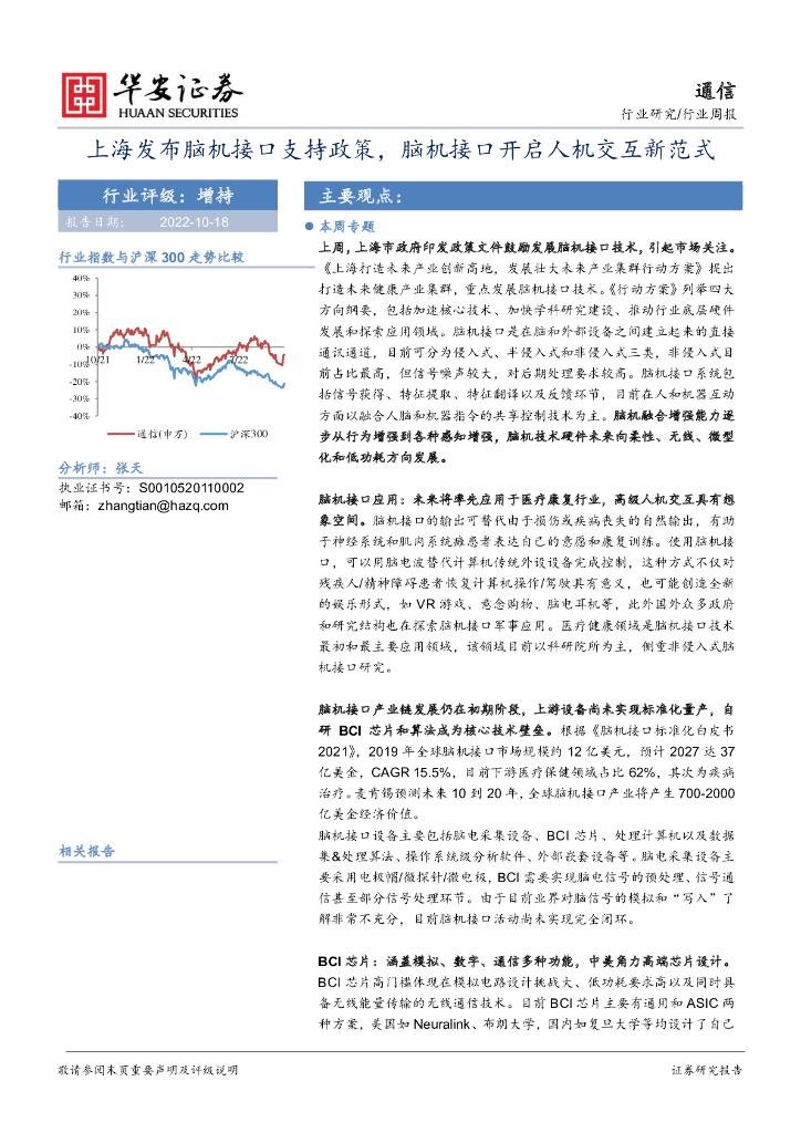 华安证券:通信行业周报:上海发布脑机接口支持政策,脑机接口开启人机交互新范式.pdf