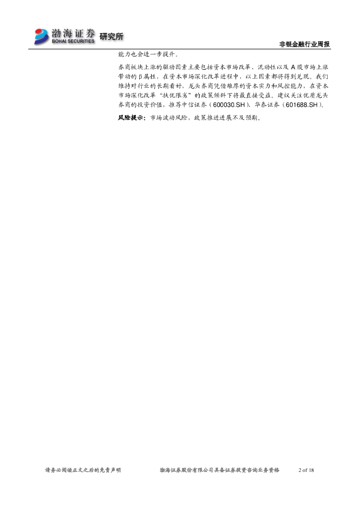 渤海证券:非银金融行业周报:券商中报业绩向好,看好板块长期配置价值.pdf