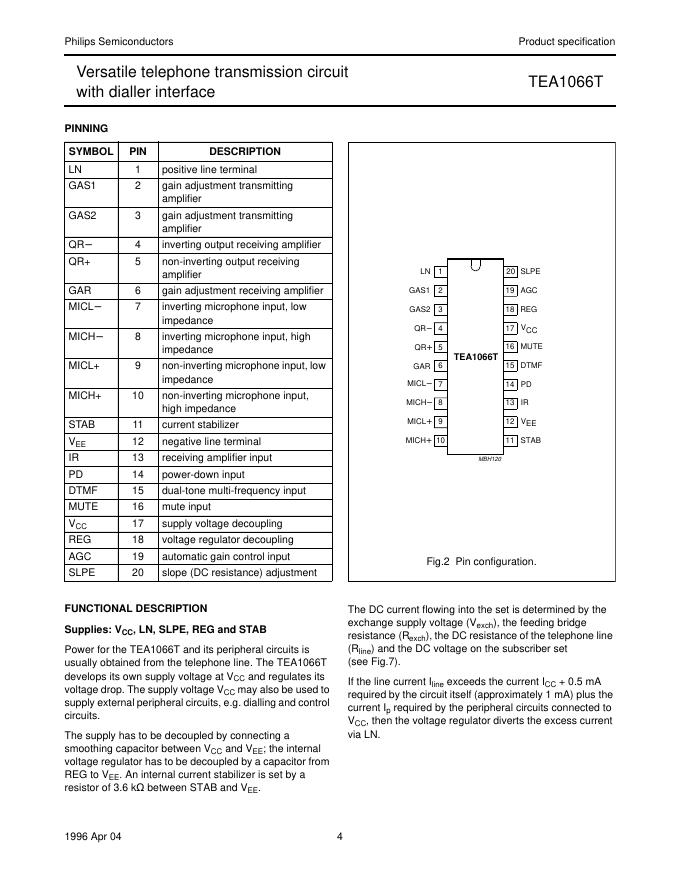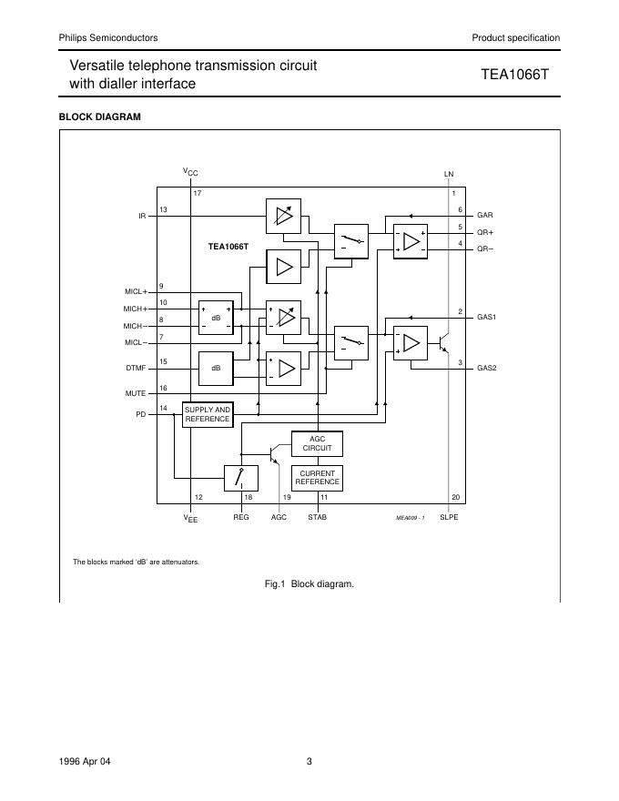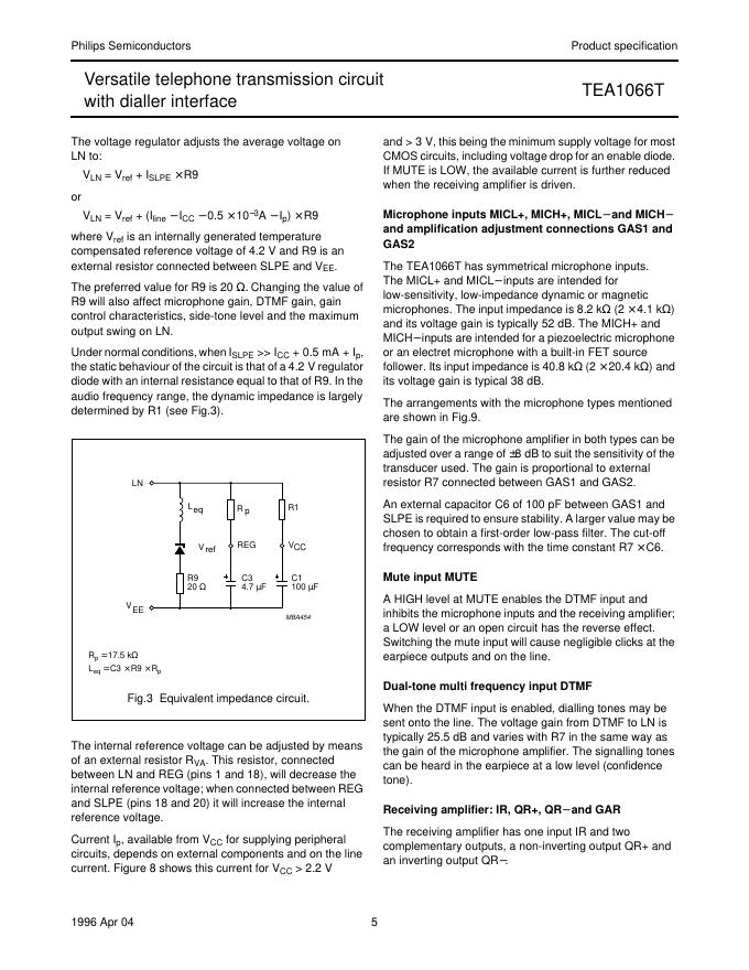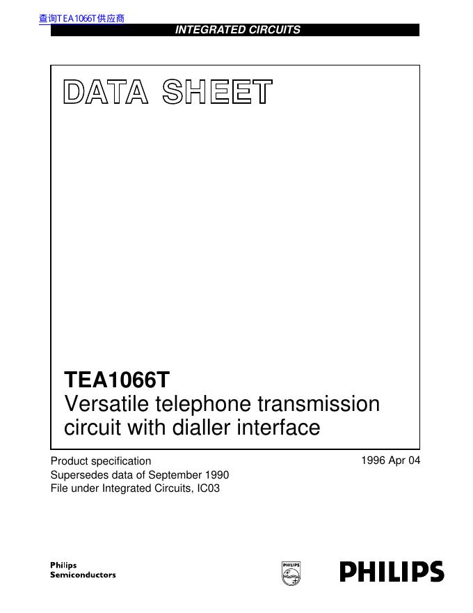 PHILIPS TEA1066T Versatile telephone transmission circuit with dialler interface 数据手册.pdf