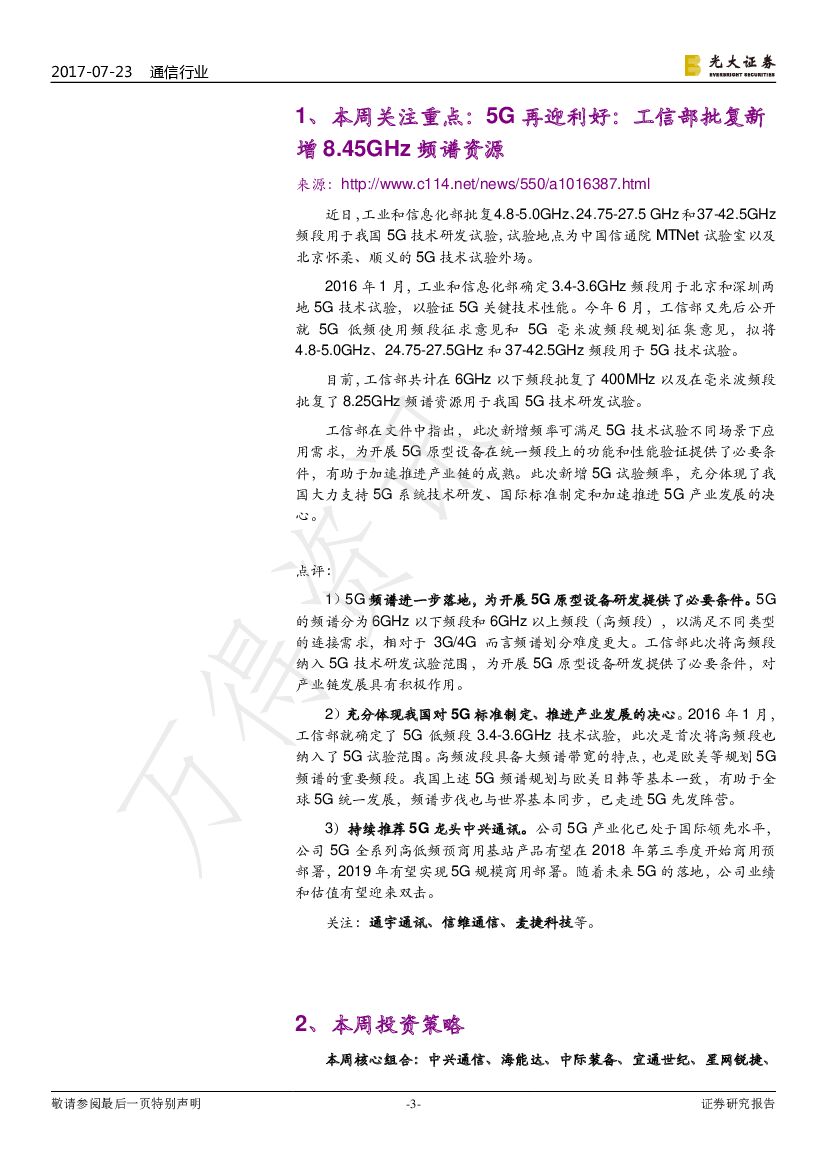 光大证券:通信行业周报:5G再迎利好:工信部批复新增8.45GHz频谱资源.pdf