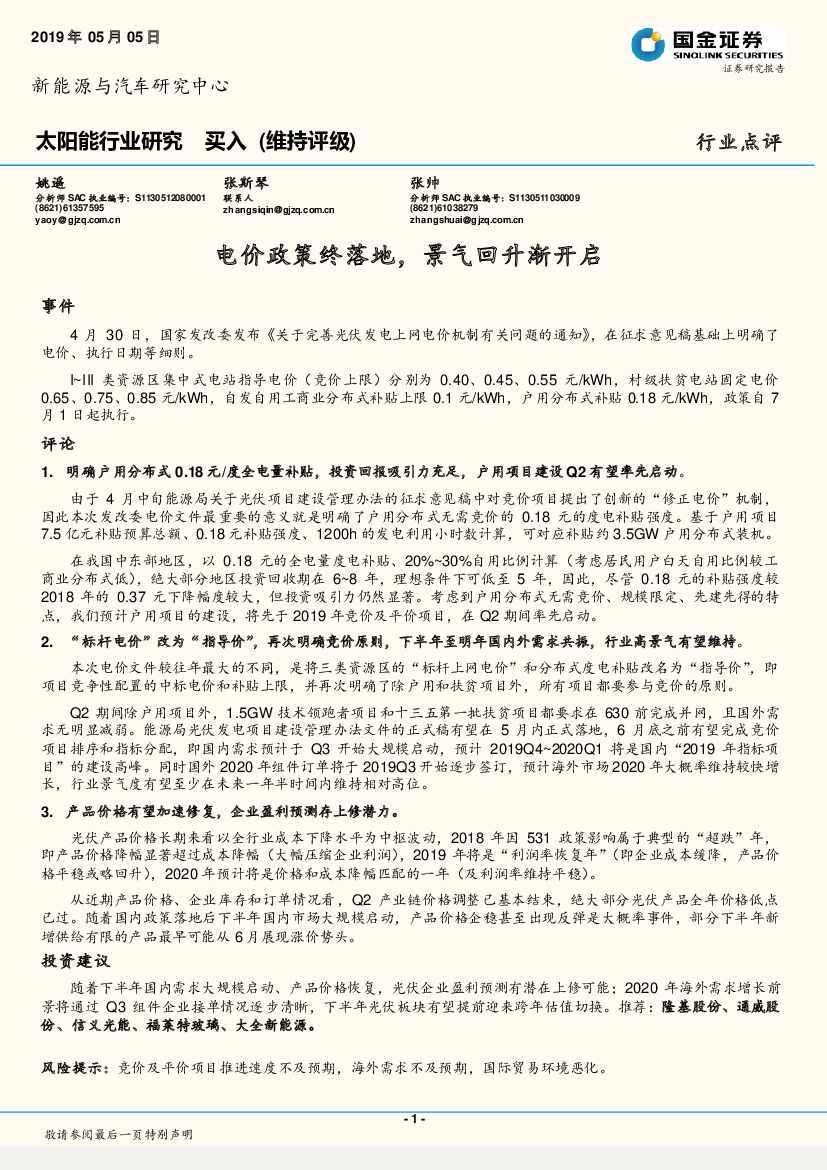 国金证券:太阳能行业研究:电价政策终落地,景气回升渐开启.pdf