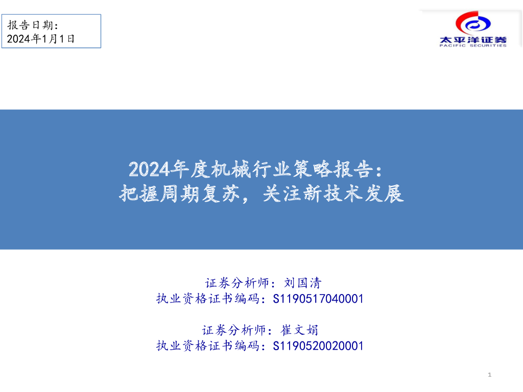 太平洋证券:2024年度机械行业策略报告:把握周期复苏,关注新技术发展.pdf