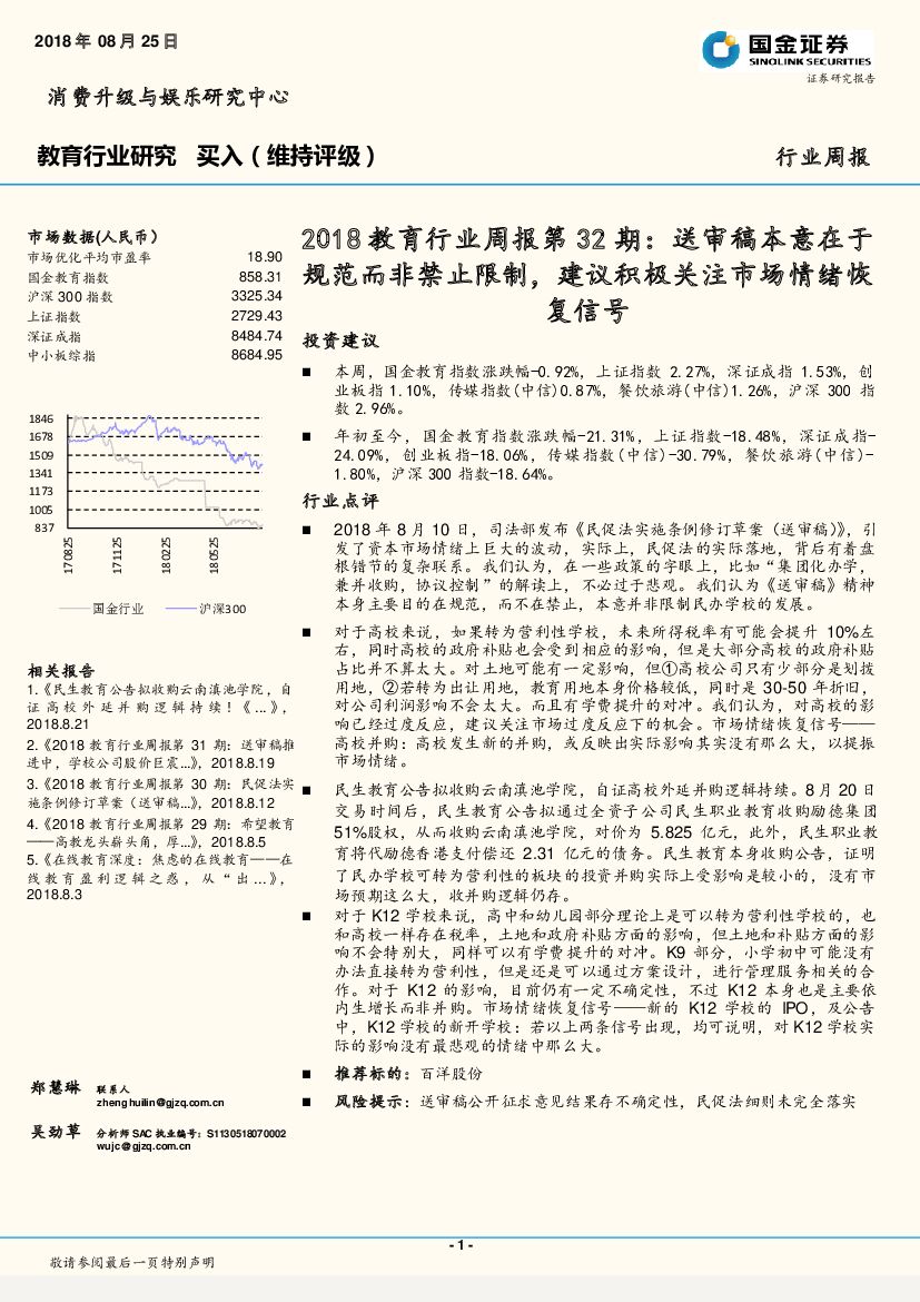 国金证券:2018教育行业周报第32期:送审稿本意在于规范而非禁止限制,建议积极关注市场情绪恢复信号.pdf