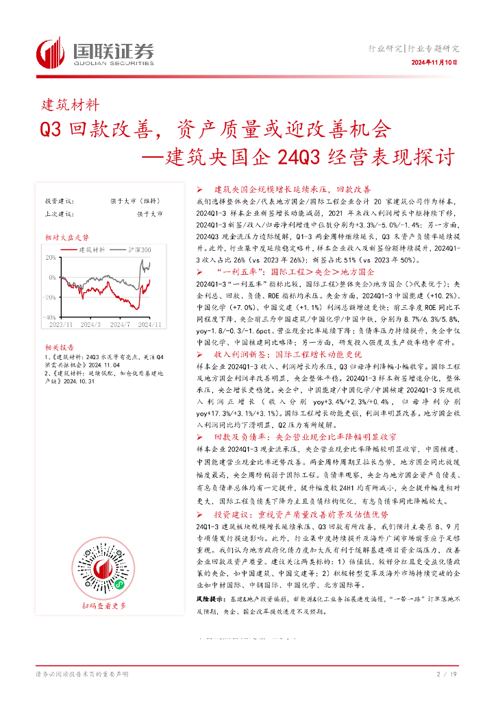 国联证券:建筑央国企24Q3经营表现探讨:Q3回款改善,资产质量或迎改善机会.pdf