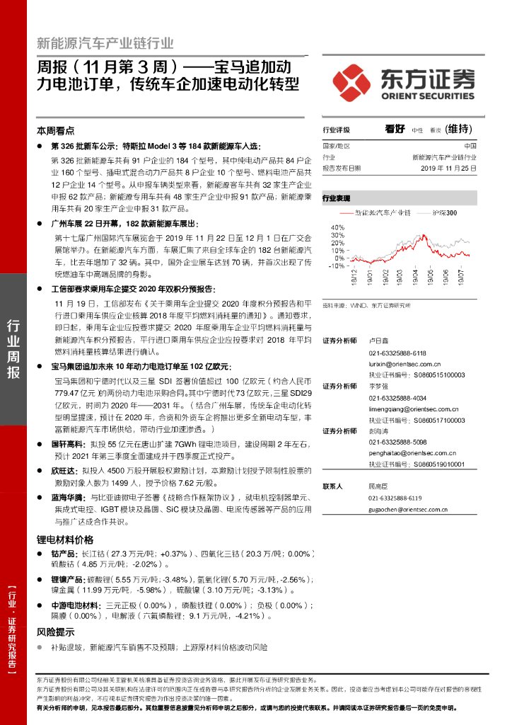 东方证券:新能源汽车产业链行业周报(11月第3周):宝马追加动力电池订单,传统车企加速电动化转型.pdf