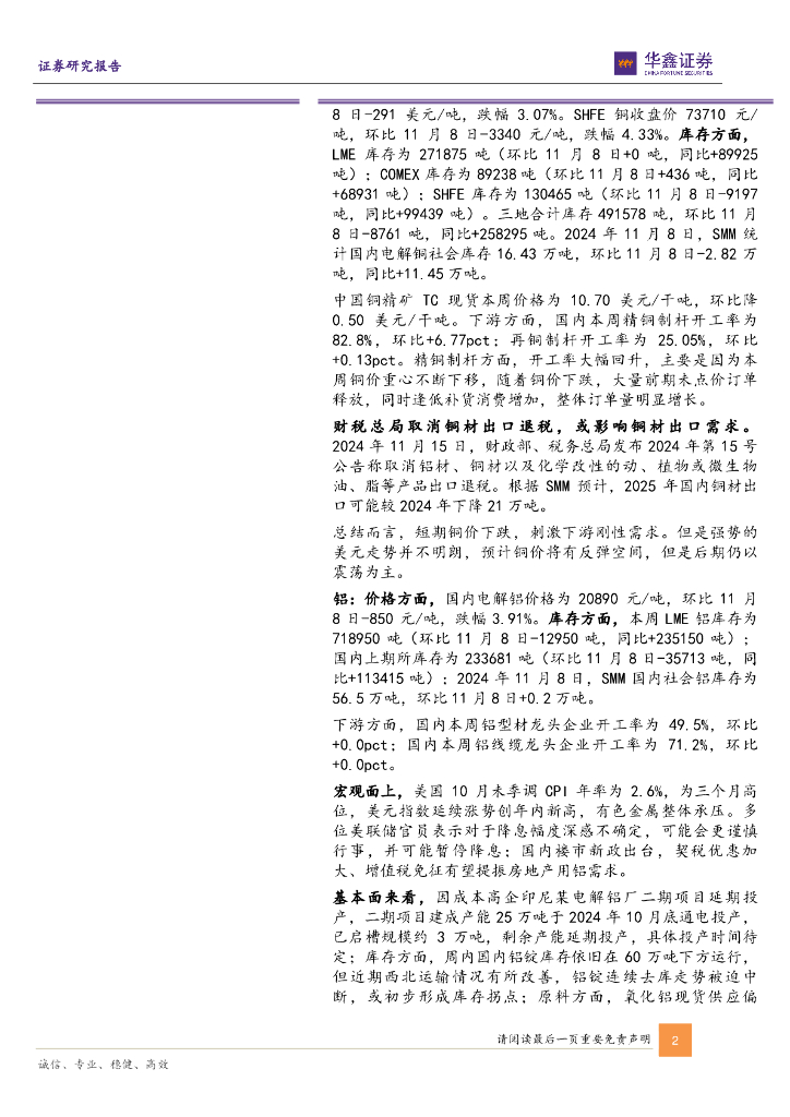 华鑫证券:有色金属行业周报:财税总局取消铜材、铝材出口退税,或影响铜铝内外盘价差.pdf