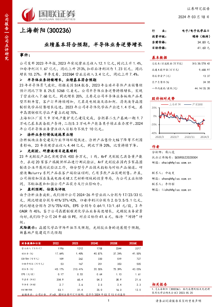 国联证券:上海新阳(300236)-业绩基本符合预期,半导体业务逆势增长.pdf