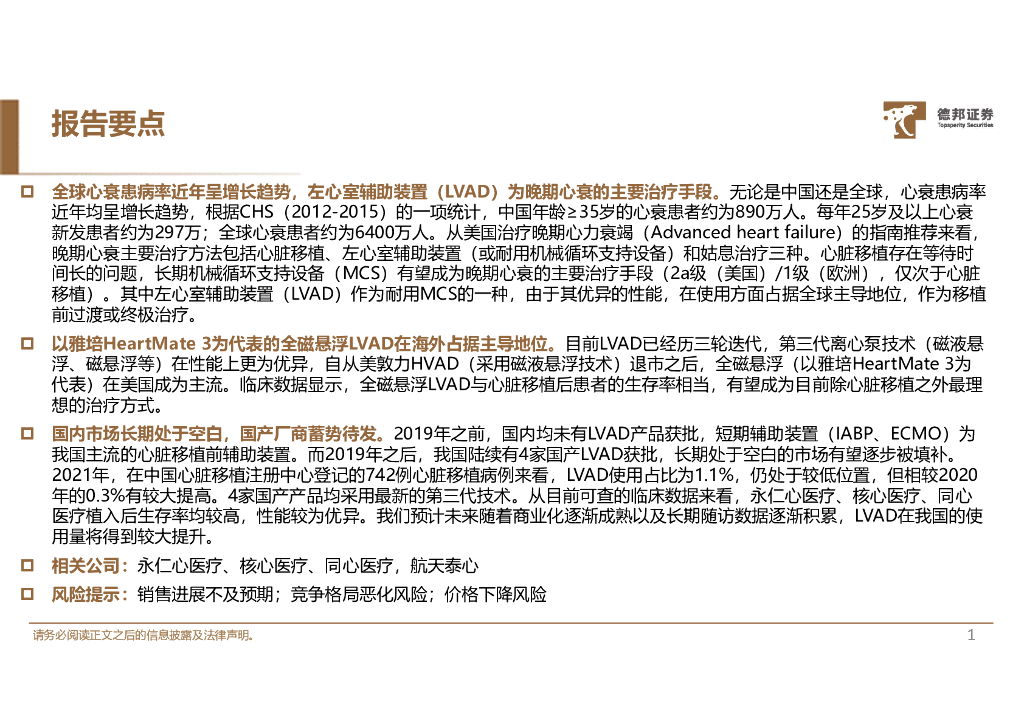德邦证券:人工心脏之LVAD:国产陆续上市填补空白蓝海市场.pdf