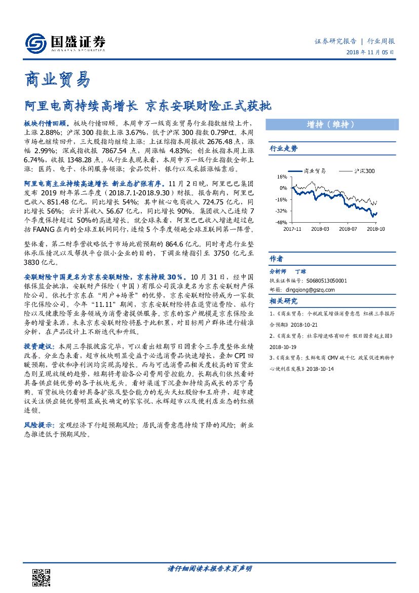 国盛证券:商业贸易行业周报:阿里电商持续高增长 京东安联财险正式获批.pdf