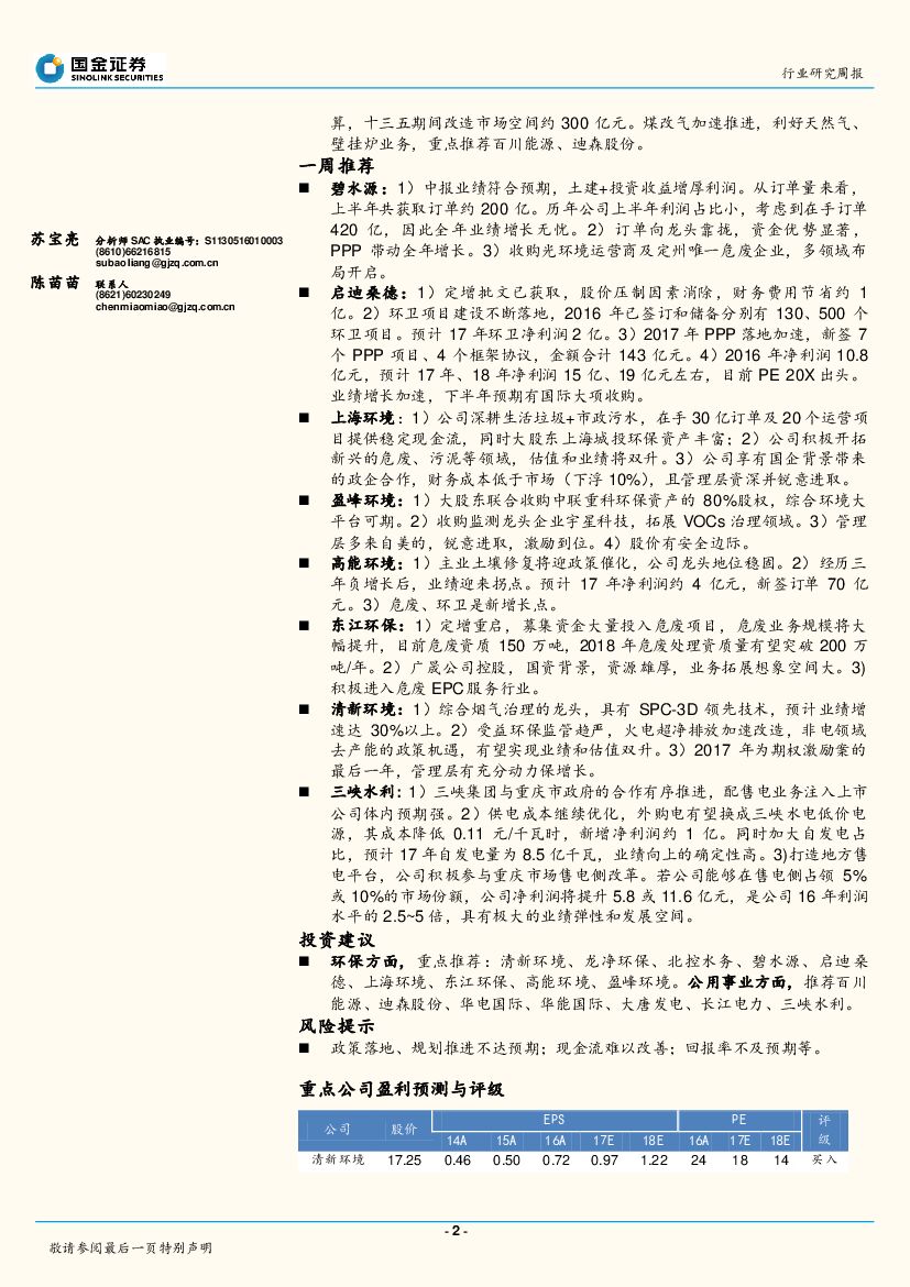 国金证券:公用事业与环保产业研究周报:环保督查动真格,大气治理关注煤改气.pdf