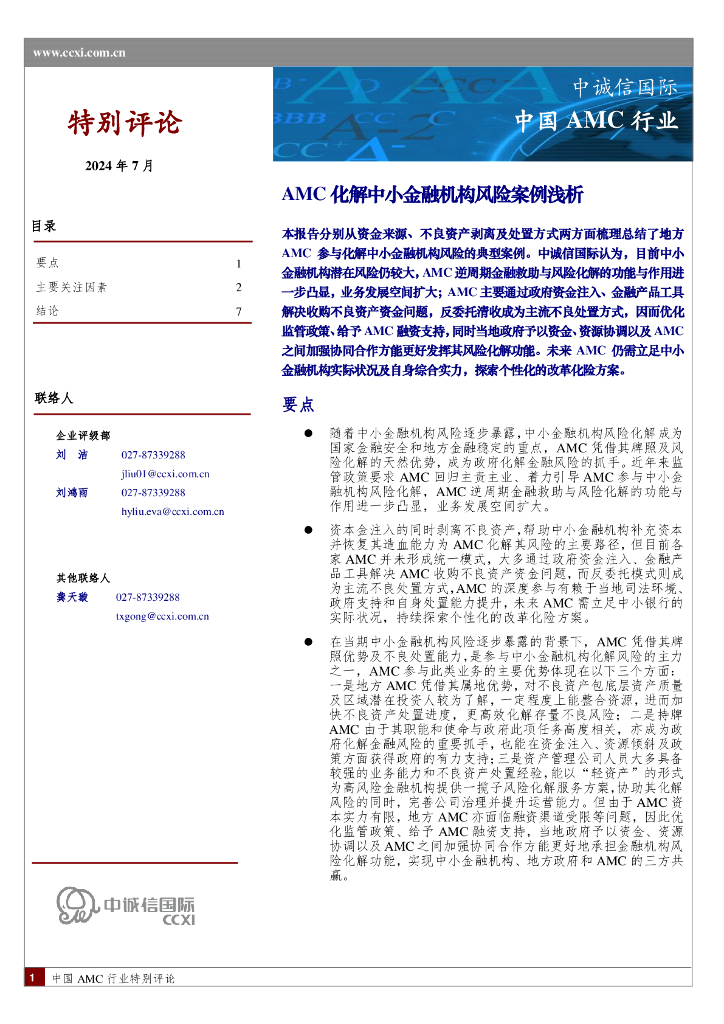 中诚信国际:中国AMC行业:AMC化解中小金融机构风险案例浅析.pdf
