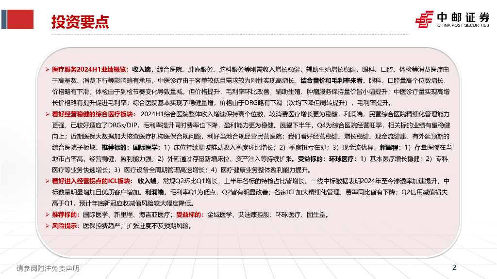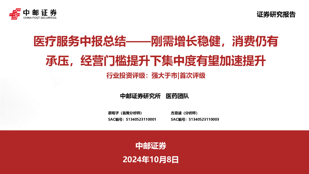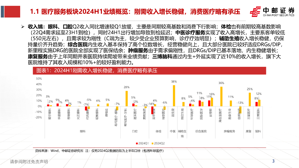 中邮证券:医疗服务中报总结:刚需增长稳健,消费仍有承压,经营门槛提升下集中度有望加速提升.pdf