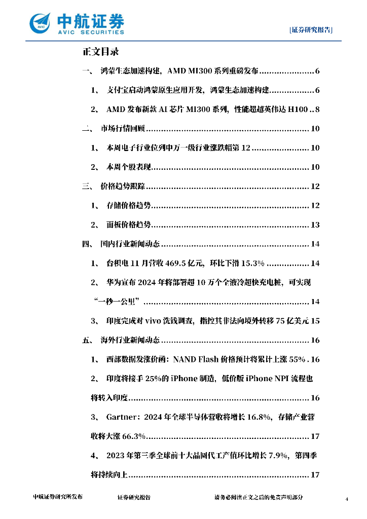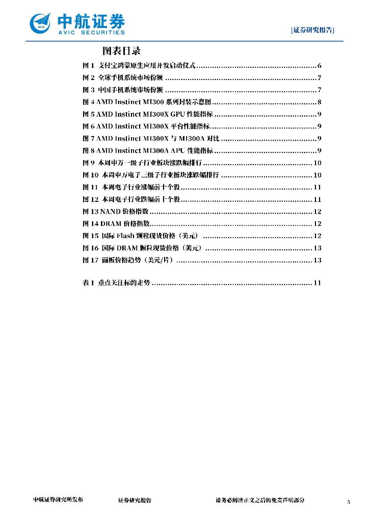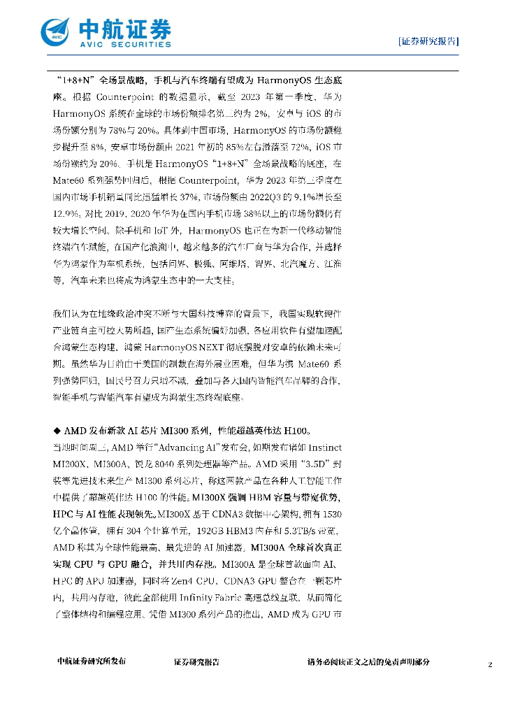 中航证券:电子行业周报:鸿蒙生态加速构建,AMD MI300系列重磅发布.pdf