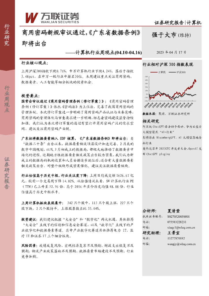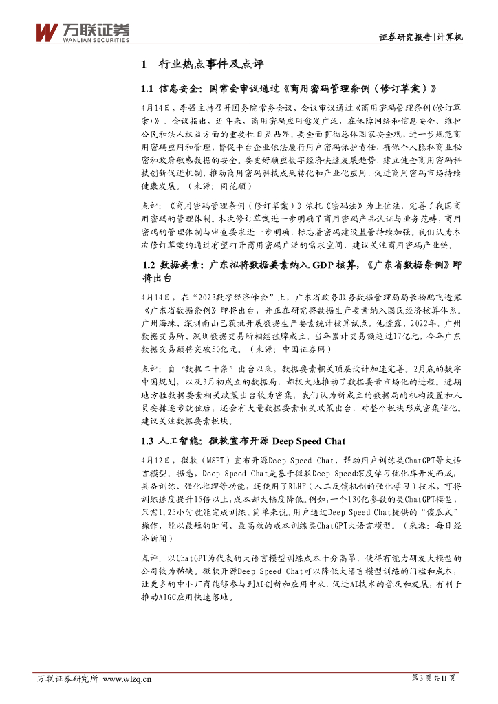 万联证券:计算机行业周观点:商用密码新规审议通过,《广东省数据条例》即将出台.pdf