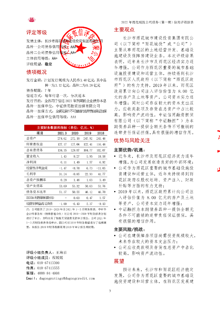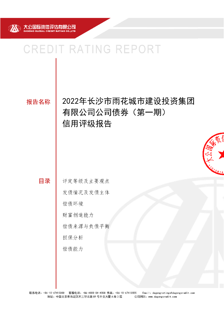 大公:2022年长沙市雨花城市建设投资集团有限公司公司债券(第一期)评级报告.pdf