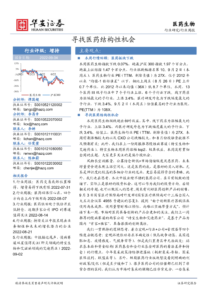 华安证券:医药生物行业周报:寻找医药结构性机会.pdf