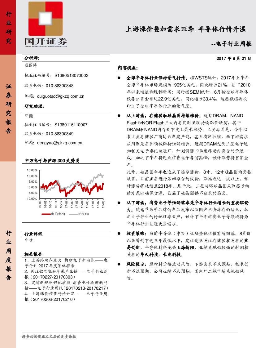 国开证券:电子行业周报:上游涨价叠加需求旺季 半导体行情升温.pdf