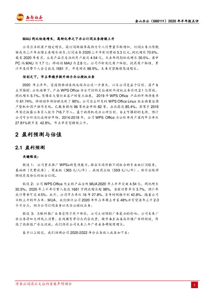 西南证券:金山办公(688111)-办公订阅业务高增长,公司业绩靓丽.pdf