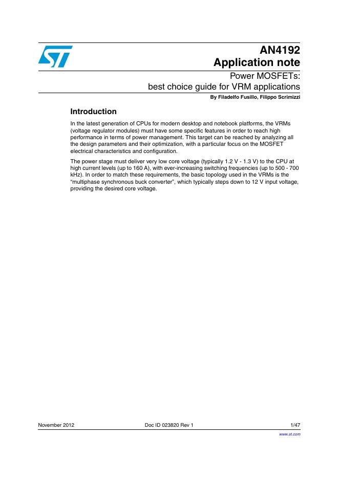 AN4192 电源MOSFET:VRM应用最佳选择指南.pdf