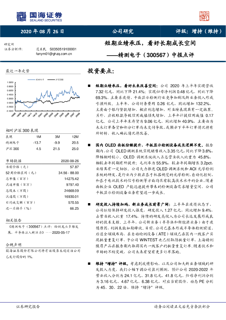 国海证券:精测电子(300567)-中报点评:短期业绩承压,看好长期成长空间.pdf