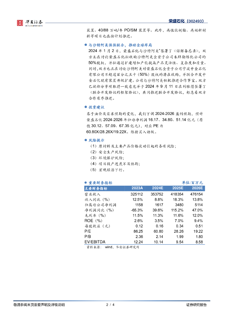 华安证券:荣盛石化(002493)-成本波动业绩承压,在建项目有序推进.pdf