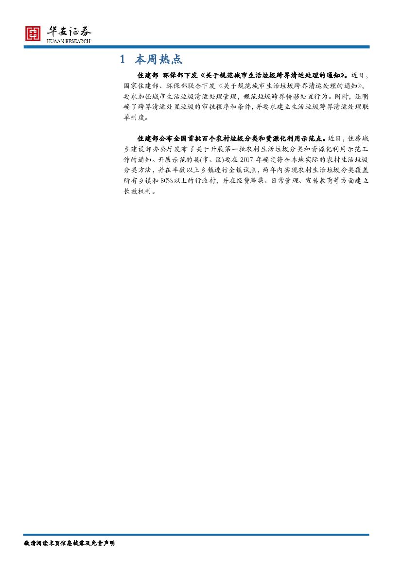 华安证券:环保行业每周报告:全国首批百个农村垃圾分类和资源化利用示范点公布.pdf