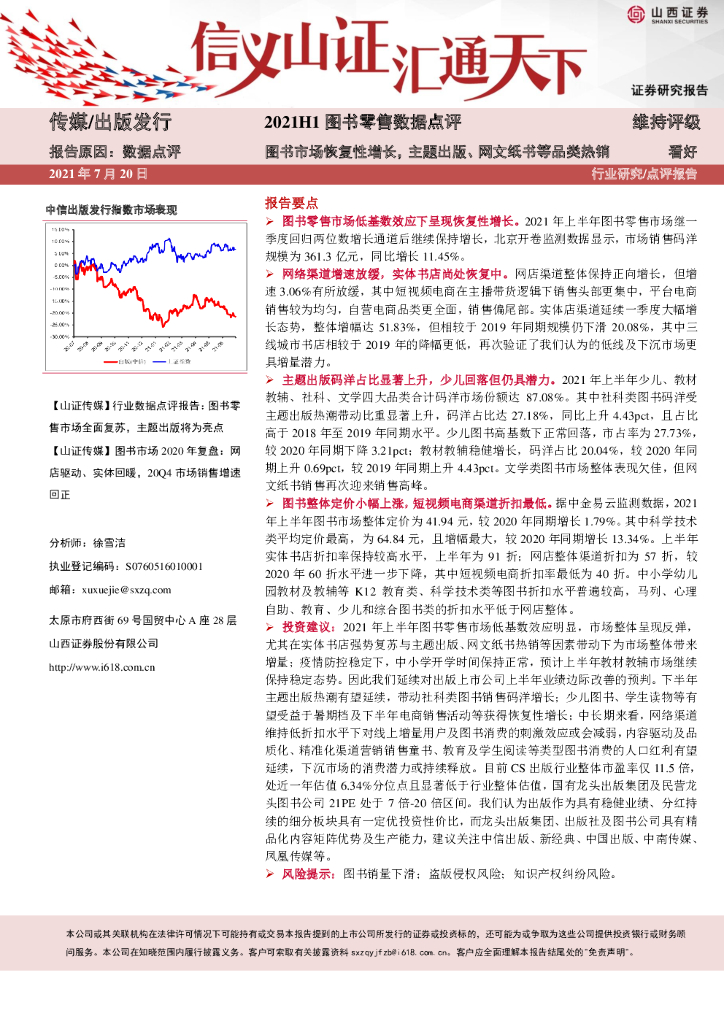 山西证券:2021H1图书零售数据点评:图书市场恢复性增长,主题出版、网文纸书等品类热销.pdf