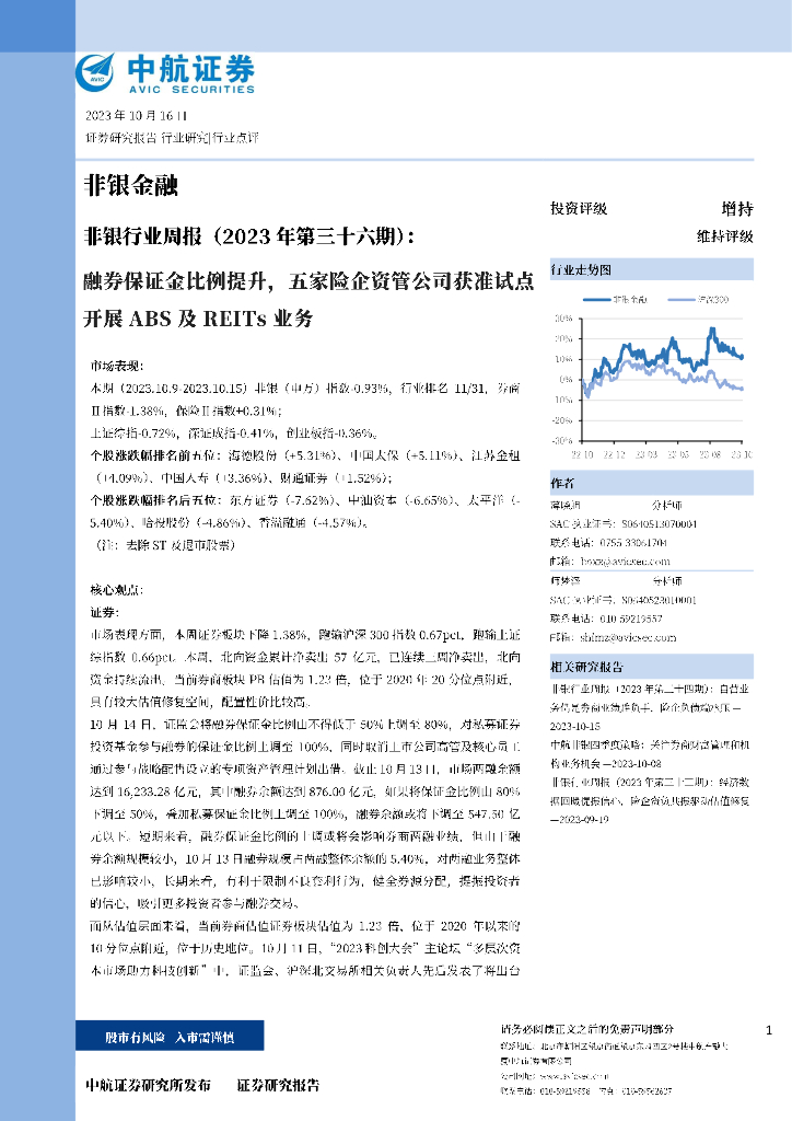 中航证券:非银行业周报(2023年第三十六期):融券保证金比例提升,五家险企资管公司获准试点开展ABS及REITs业务.pdf