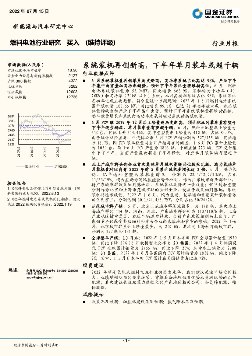国金证券:燃料电池行业月报:系统装机再创新高,下半年单月装车或超千辆.pdf