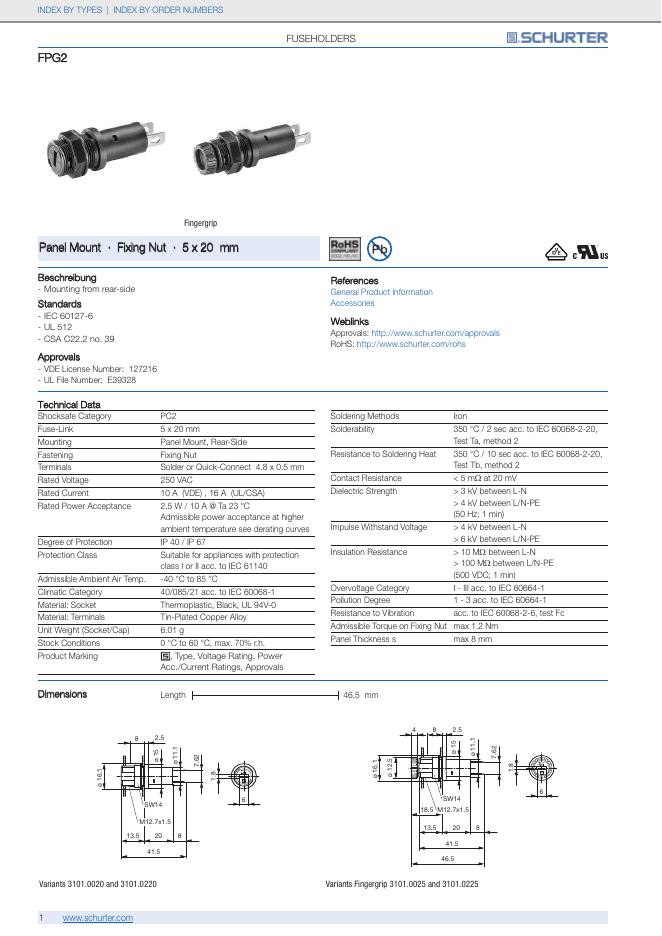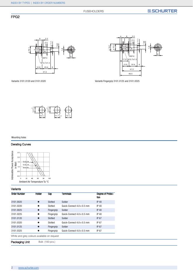 SCHURTER - 1 INDEX BY TYPES | INDEX BY ORDER NUMBERS FUSEHOLDERS F FP PG G2 2 www.schurter.com FPG2 Fingergrip 数据手册.pdf