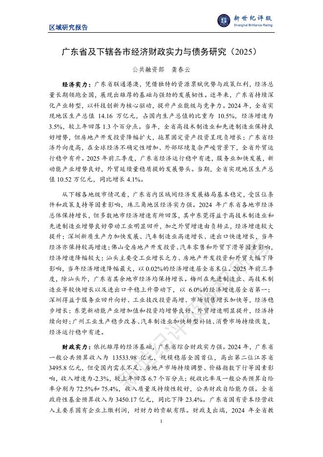 新世纪评级:广东省及下辖各市经济财政实力与债务研究(2025).pdf